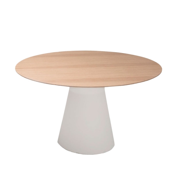 Puukantista Reverse-pöytää on saatavilla nettikaupassamme kahdessa värivaihtoehdossa; valkoinen jalka yhdistettynä vaaleaan tammikanteen, tai musta jalka yhdistettynä tummanruskeaan tammikanteen. Nämä versiot ovat molemmat halkaisijaltaan 130-senttisiä, mutta pöydästä on saatavilla lukuisia eri kokoja, myös soikeilla ja nelikulmaisilla kansilla. Jos olet kiinnostunut pöydästä mutta toisenlaisina versioina, ota yhteyttä suoraan liikkeesiimme.