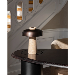 Etsiessään yksinkertaisia ja nerokkaita valaistusratkaisuja, tanskalainen suunnittelija Aleksandar Lazic otti inspiraationsa 1970-luvun italialaisista marmoripöydistä luodessaan Reverse Lamp -valaisimen. Kartiomainen travertiinijalusta ja kaareva, pronssinen alumiinivarjostin määrittelevät valaisimen täydellisen tasapainoisen ilmeen.