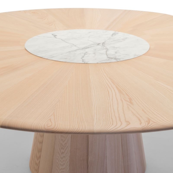 Tässä verkkokauppamme versiossa pöydän kannessa on Calacatta marmorinen, pyörivä keskiosa.