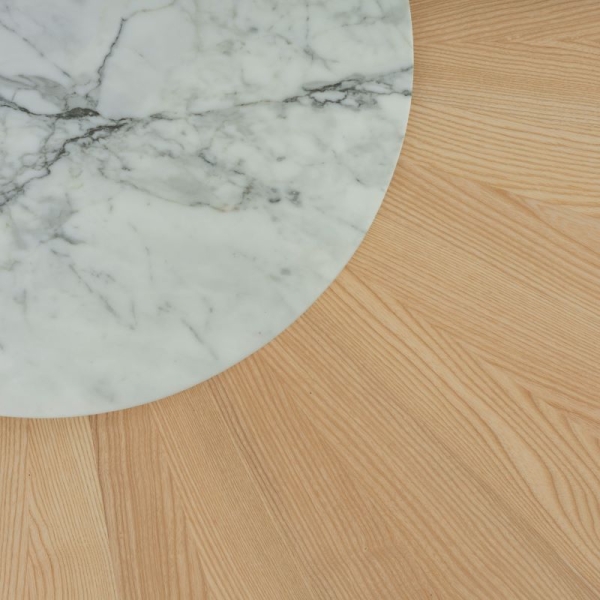Materiaali: massiivisaarni, käsitelty vaalean tammen väriseksi, valkoinen Calacatta marmori, hiekka