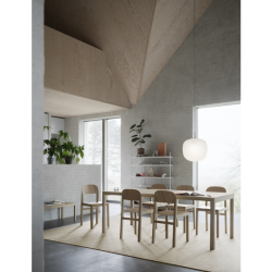Valaisimen PVC:tä oleva johto on samansävyinen kuin varjostimen kanta ja se on kotonaan sekä yksikseen että pareina ruokapöytien yläpuolella ja olohuoneissa sekä näyttävänä rykelmänä isoissa, korkeissa tiloissa.