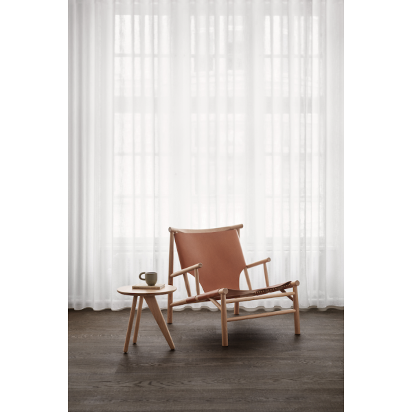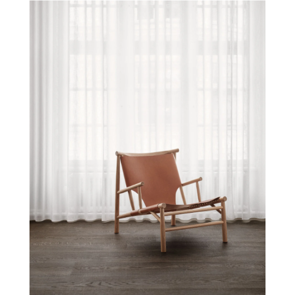 Samurai tuolissa särmikäs ja sorvattu tammirunko yhdistyy kauniisti ja nimensä mukaisesti - japanilaista estetiikkaa todentaen - laadukkaaseen satulanahkaan. Japanilaisuuden lisäksi tuoli on saanut inspiraatiota tanskalaisista 50-luvun pinnatuoleista ja siinä istutaan varsin matalalla.