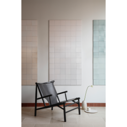 Samurai tuolissa särmikäs ja sorvattu tammirunko yhdistyy kauniisti ja nimensä mukaisesti - japanilaista estetiikkaa todentaen - laadukkaaseen satulanahkaan. Japanilaisuuden lisäksi tuoli on saanut inspiraatiota tanskalaisista 50-luvun pinnatuoleista ja siinä istutaan varsin matalalla.