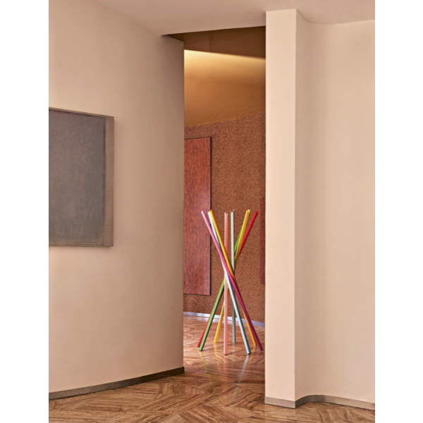 Innoituksen ulkomuotoonsa tämä klassikko on saanut kiinalaisesta pelistä jossa puutikut tiputetaan pöydälle kädestä. Niinpä naulakon rakenne sisältää vain holkilla yhteen kiinnitetyt puutikut jotka lattialla, avattuna muodostavat kauniin, monihaaraisen naulakon joka sopii myös vaativiin ympäristöihin.