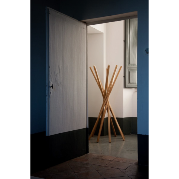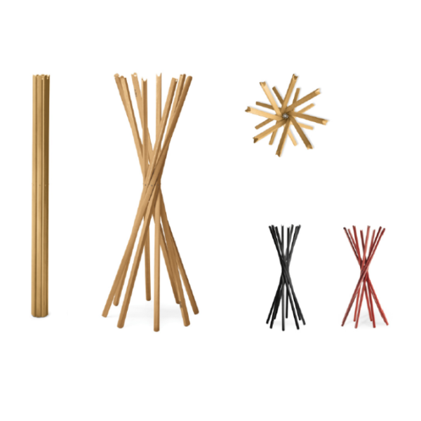 Innoituksen ulkomuotoonsa tämä klassikko on saanut kiinalaisesta pelistä jossa puutikut tiputetaan pöydälle kädestä. Niinpä naulakon rakenne sisältää vain holkilla yhteen kiinnitetyt puutikut jotka lattialla, avattuna muodostavat kauniin, monihaaraisen naulakon joka sopii myös vaativiin ympäristöihin.