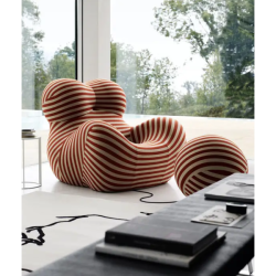 Tämä vaikuttava nojatuoli on parhaimmillaan isoissa tiloissa jolloin sen poptaiteenomaisen kuvaileva muotokieli pääsee parhaiten oikeuksiinsa.