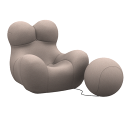 Ikoniseen, jo vuonna 1969 suunniteltuun Serie Up nojatuoliin kuuluu oleellisesti pyöreä, pallomainen rahi, joka on kytketty kiinni tuoliin.