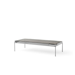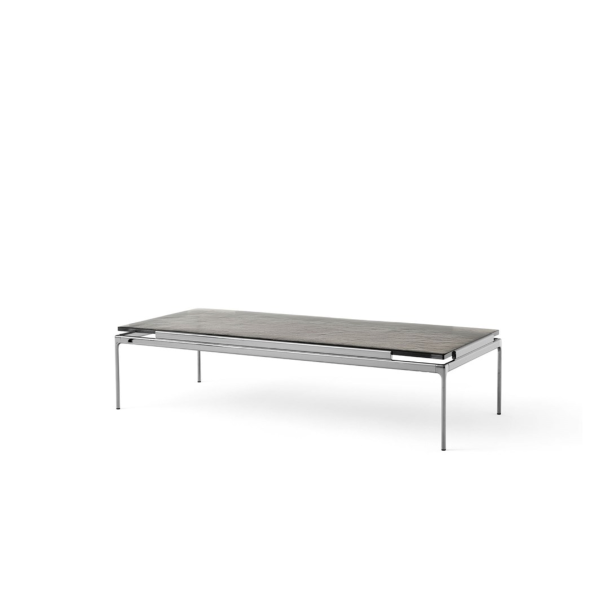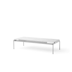 Marmoripöytälevyt: Marmori leikataan muotoon ja kiillotetaan sitten mattapintaiseksi. Sen jälkeen se käsitellään suojaavalla pintakäsittelyllä. Runko: Jalat ovat valettua alumiinia ja sivukaiteet suulakepuristetuista alumiiniprofiileista. Jalat ja profiilit on pintakäsitelty tummalla kromilla. Jokainen marmorinen pöytälevy on ainutlaatuinen luonnonmateriaalinsa ansiosta. Savustusta lasista valmistetut pöytälevyt ovat ainutlaatuisia valuprosessin ansiosta.