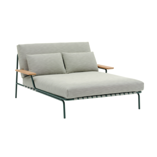 Materiaali: galvanoitu ja pulverimaalattu teräs, Sapele mahonki, nopeasti kuivuva vaahtomuovi, ulkokangas Ribbed Weave 2/Dark Green