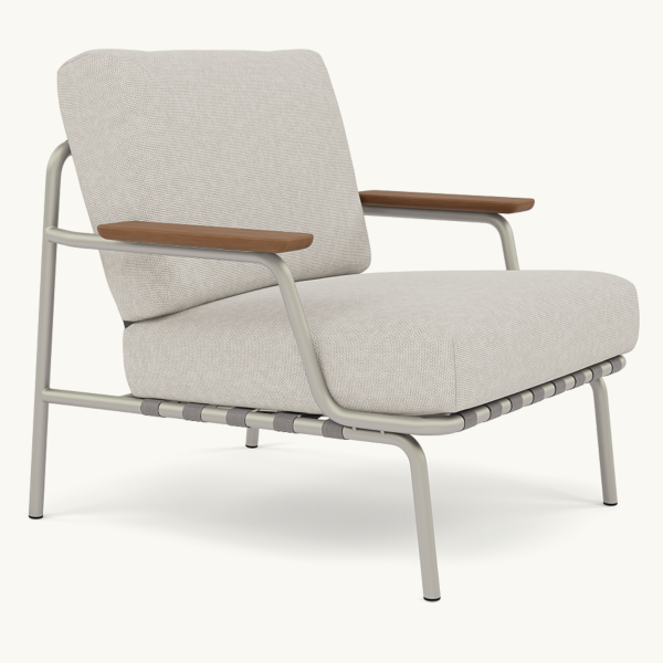 Materiaali: galvanoitu ja pulverimaalattu teräs, Sapele mahonki, nopeasti kuivuva vaahtomuovi, ulkokangas Lazy 1