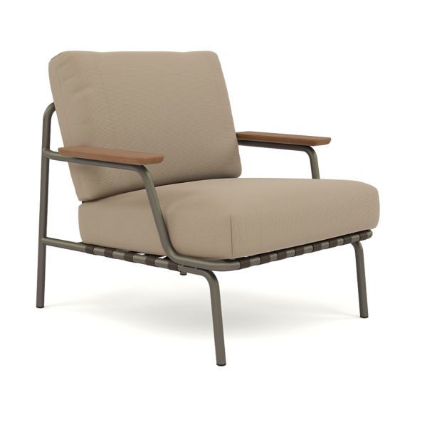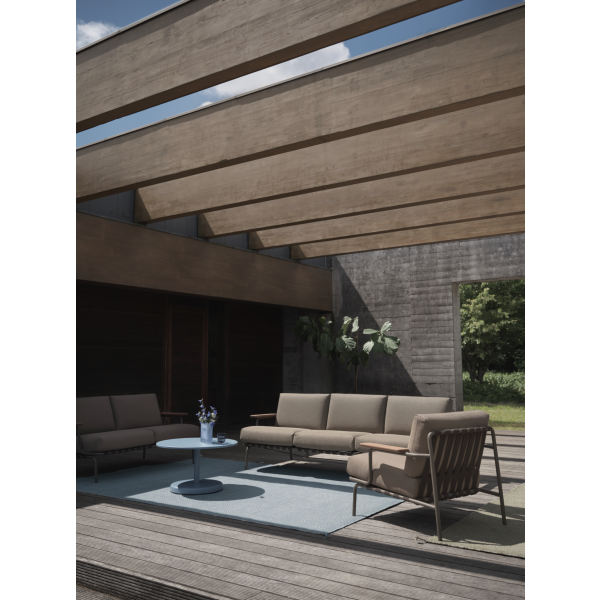 Materiaali: galvanoitu ja pulverimaalattu teräs, Sapele mahonki, nopeasti kuivuva vaahtomuovi, ulkokangas Ribbed Weave 5