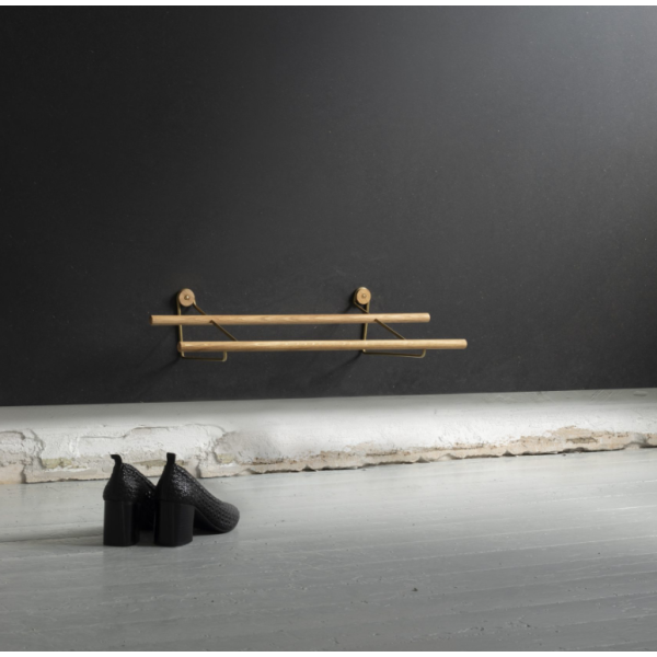 Pienikokoinen ja yksinkertainen mutta tyylikäs kenkäteline sopii mihin tahansa kotiin. Kenkäteline on säädettävä kenkien järjestäjä, joka on valmistettu kiinteistä ja kestävistä materiaaleista. Erilaisten kenkien sovittamiseksi teline on erittäin käyttäjäystävällinen ja sitä voidaan helposti säätää ja tarjota säilytystilaa kaikenkokoisille. Kiinnikkeitä on saatavana messingistä tai mustasta teräksestä, jotka voidaan helposti kierrättää, kun tuotteen käyttöikä on lopussa. Kenkätelineen huonekalujen osat on valmistettu FSC-sertifioidusta tammesta, jotta vastuullisten huonekalujen saatavuus lisääntyisi. Uusi tammituotesarja palvelee asiakkaiden tarpeita, jotka suosivat skandinaavista ympäristöystävällistä materiaalia ja tyyliä.