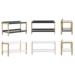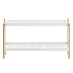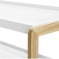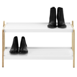 Sko kenkätelineessä saarnirunko yhdistyy kauniisti metallisiin kenkätasoihin. Saatavilla sekä valkoisena että mustana.