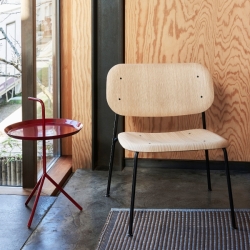 Hayn Soft Edge 100 Lounge -nojatuoli on täydennystä Soft Edge -tuoliperheeseen. Soft Edge on sekä niukan skandinaavinen että klassinen, muistumia 1950- tai 60-luvuilta mukanaan kantava metallijalkainen ja puuistuimellinen tuoli.