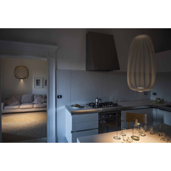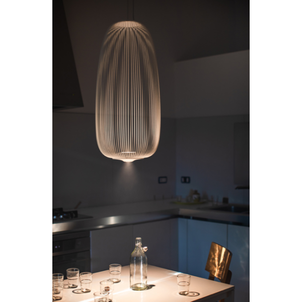 Kauniit ja käytettävät Spokes valaisimet ovat saaneet inspiraationsa itämaisista lyhdyistä ja nimensä polkupyörien pinnoista. Kevyt, näyttävän isokoinen ja monipuolisen toimiva valaisin luo ympärilleen pehmeää ja alaspäin suoraa valoa. Spokes valaisinsarja on Foscarinin suosittu klassikko jonka ilme puhuttelee vuosienkin jälkeen. Tämä valaisin numero 1 on kapeamuotoinen ja korkea ja sen voit myös yhdistää muihin Spokes muotoihin.