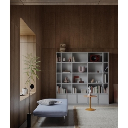 Kokonaisuuksia voi käyttää niin hyllyinä, kirjahyllyinä, tilanjakajina kuin pikkupöytinäkin.