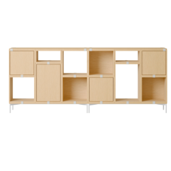 Muuton Stacked on suosittu, innovatiivinen, pienillä metalliklipseillä toisiinsa liitettävistä moduuleista kostuva hyllyjärjestelmä, jonka erikokoisista ja -värisistä osista voit rakentaa ja koota lukemattomia erilaisia yhdistelmiä kotiisi.
