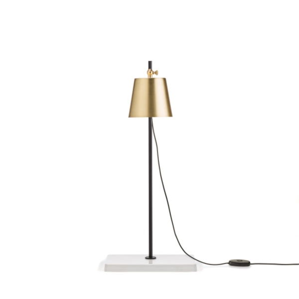 Valaisimen materiaaleissa yhdistyvät posliini, mustaksi lakattu teräs ja messinki, jotka luovat mielenkiintoisia kontrasteja ja tuovat valaisimeen hienostuneen ja ajattoman ilmeen. Posliinijalusta antaa tukea ja vakautta, kun taas messinkinen varjostin ja pyörivä varsi tuovat ripauksen eleganssia ja monikäyttöisyyttä.