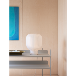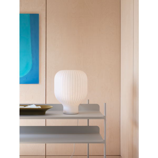 Lämmin ja miellyttävä valo suodattuu ja se tuo huoneeseen mukavuutta, harmoniaa ja hienostunutta herkkyyttä. Strand on saatavana 2 kokoa - näin se tarjoaa monipuolisia sijoittelumahdollisuuksia – työpöydiltä ja hyllyiltä lattioille.