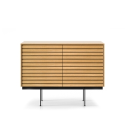 Sussex 12 koostuu vaakasuuntaisista rimoista jotka toimivat ovien ja laatikoiden kahvoina. Jalustalla, säädettävillä jaloilla tai valinnaisista seinäkiinnikkeistä riippuva senkki tai tv-taso. Ovielementeissä on korkeussäädettävät hyllyt.