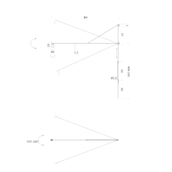Mitat: korkeus 165 cm (minimikorkeus lattiasta), pituus 184 cm, varren paksuus 1,2 cm, kuvun pituus 10 cm ja halkaisija 5 cm, johdon pituus 3,5 m