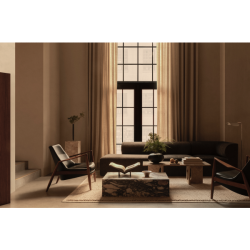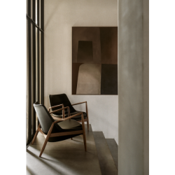 Viistot rungot ja käsinojat sekä nahkaverhoilu korostavat mukavuutta ja kutsuvat rentoutumaan. Vaikka se on valmistettu raskaista materiaaleista, siinä on myös keveyttä; runko näyttää kelluvan puurungon sisällä.