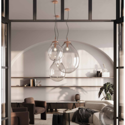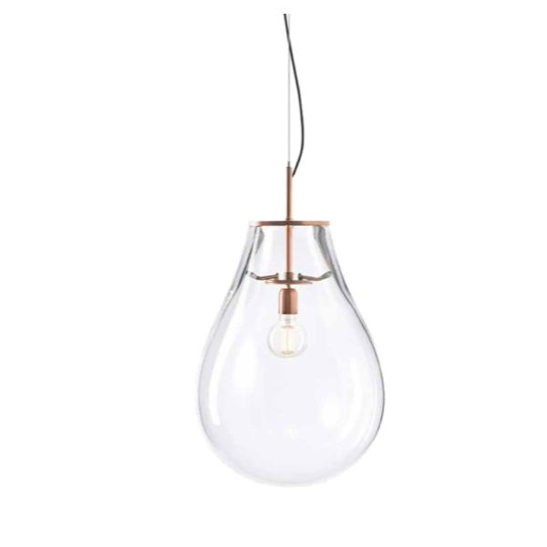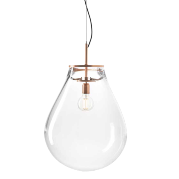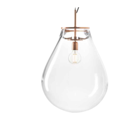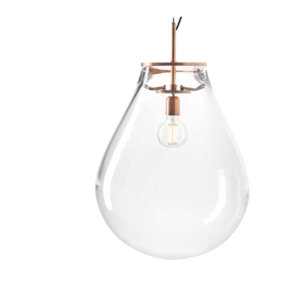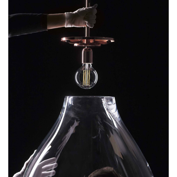 Materiaali ja väri: käsin puhallettu kristallilasi, harjattu kupari, tekstiilijohto musta