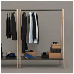 Toj on moderni säilytyshuonekalu vaatteille, kengille ja laukuille. Naulakko on saanut ideansa teollisesta ja funktionaalisesta näkökulmasta, käyttämäsi vaatteet voivat olla esillä ja helposti löydettävissä. Voit myös sujuvasti siirrellä naulakkoa tarpeittesi mukaan. Toj naulakkoa on saatavilla kahta kokoa ja kahta väriä.