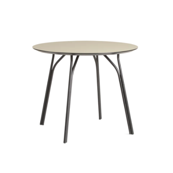 Metalliset jalat, jotka haarautuvat kuin puun oksat, tekevät Tree-ruokapöydästä tyylikkään ja orgaanisen graafisen. Jokainen jalka on tehty kahdesta teräsputkesta, jotka nousevat ensin vierekkäin ennen kuin niiden reitti erkanee tukeakseen pöytälevyä useissa kohdissa. Jalat nostavat varsimaisesti pyöreää pöytälevyä, joka kuvaa lehtikatosta - kuin puu ikään.