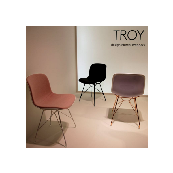 Troy tuolissa kevyt jalkarakenne yhdistyy polypropyleeni-istuimeen. Tuolin olemuksessa on modernin klassikon ainesta ja kokonaan valkoinen tai musta tuoli on aina tyylikäs valinta kotien pikkutuoliksi.