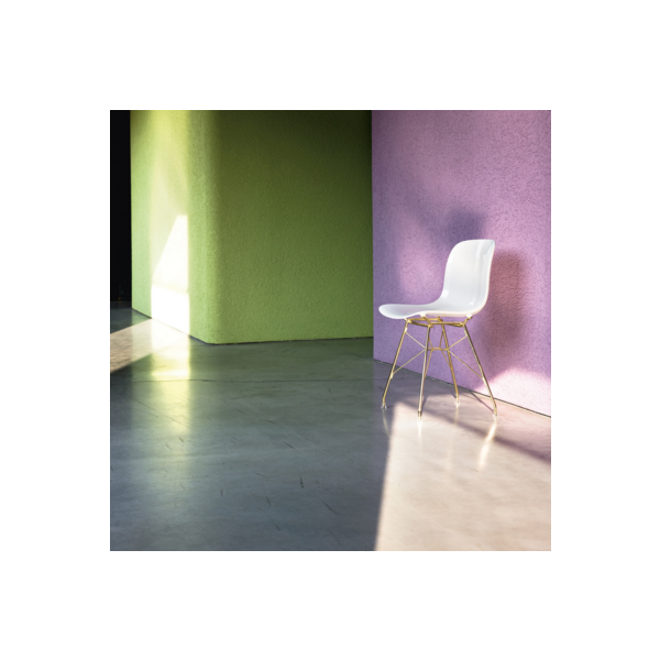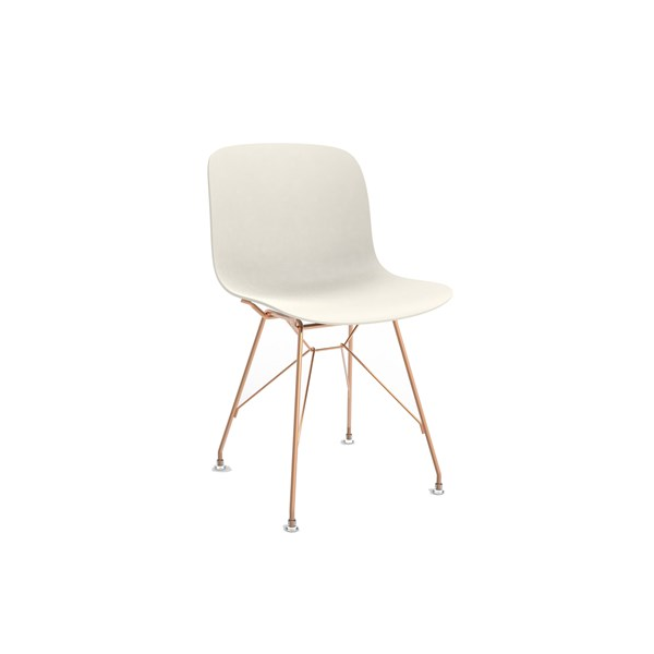 Troy tuolissa kevyt jalkarakenne yhdistyy valkoiseen ja mustaan sekä pirteän värikkäisiin polypropyleeni-istuimiin. Uusimmissa versioissa tuolin klassisen moderni olemus on saanut jalkoihinsa trendikkään kuparinvärisen pinnan, joka tuo tuoliin myös lämpöä.