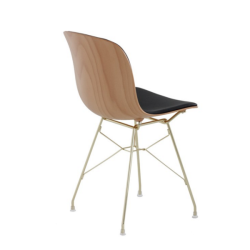 Tässä Troy tuolissa kevyt, kullanvärinen jalkarakenne yhdistyy etuosaltaan verhoiltuun, pyökkivaneria olevaan istuimeen. Tuolin olemuksessa on modernin klassikon ainesta ja puuselkäinen tuoli on aina arvokkaampi, tyylikäs ja mukava valinta kotien pikkutuoliksi, joka toimii sekä ruokapöytien äärellä että yksittäisenä istuimena eteisissä ja makuutiloissa. Tämän pyökkiselkäisen ja kultajalkaisen, mustalla verhoillun tuolin lisäksi saatavilla on kuparijalkainen, valkaistua tai mustaa pyökkiä oleva tuoli, jonka verhoiluvärivaihtoehdoissa on paljon valinnanvaraa. Jos olet kiinnostunut näistä vaihtoehdoista, ota yhteyttä suoraan liikkeisiimme. Saatavilla on myös valko- ja mustajalkainen versio, valkaistulla ja mustalla pyökkitaustalla - näidenkin kohdalla ota yhteyttä liikkeisiimme.