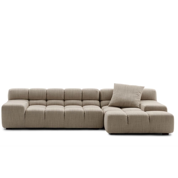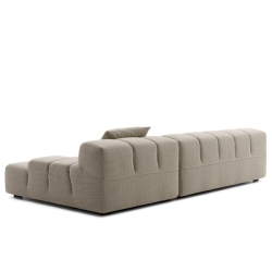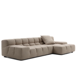 Tufty-Time-sohvasarja, yksi B&B Italian vahvimmista menestyksistä, löytää tehokkaita vastauksia modulaarisuuden, mukavuuden ja irrotettavien päällisten teemoihin. Tufty-Time-moduulijärjestelmä alkaa ottomaanilla peruskappaleena, jota seuraa sitten keski-, kulma- ja pääteelementit matalalla tai korkealla käsinojalla. Elementtien avulla keksitään perinteisiä sohvia, leposohvia, kulmasohvia ja saarekeelementtejä, jotka tarjoavat 360° istumaratkaisun. Viihtyisä korostuneemmassa syvyydessä, siitä tulee kohtaamispaikka, vieraanvarainen turvapaikka, jossa ihmiset voivat vain rentoutua. Kangasverhoilunsa ansiosta se tarjoaa nykyaikaisemman ilmeen perinteisiin Chesterfield- ja capitonné-sohviin sekä vapaamman ja vapaamman elämäntavan