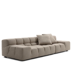 Tufty-Time-sohvasarja, yksi B&B Italian vahvimmista menestyksistä, löytää tehokkaita vastauksia modulaarisuuden, mukavuuden ja irrotettavien päällisten teemoihin. Tufty-Time-moduulijärjestelmä alkaa ottomaanilla peruskappaleena, jota seuraa sitten keski-, kulma- ja pääteelementit matalalla tai korkealla käsinojalla. Elementtien avulla keksitään perinteisiä sohvia, leposohvia, kulmasohvia ja saarekeelementtejä, jotka tarjoavat 360° istumaratkaisun. Viihtyisä korostuneemmassa syvyydessä, siitä tulee kohtaamispaikka, vieraanvarainen turvapaikka, jossa ihmiset voivat vain rentoutua. Kangasverhoilunsa ansiosta se tarjoaa nykyaikaisemman ilmeen perinteisiin Chesterfield- ja capitonné-sohviin sekä vapaamman ja vapaamman elämäntavan