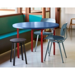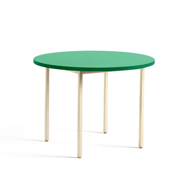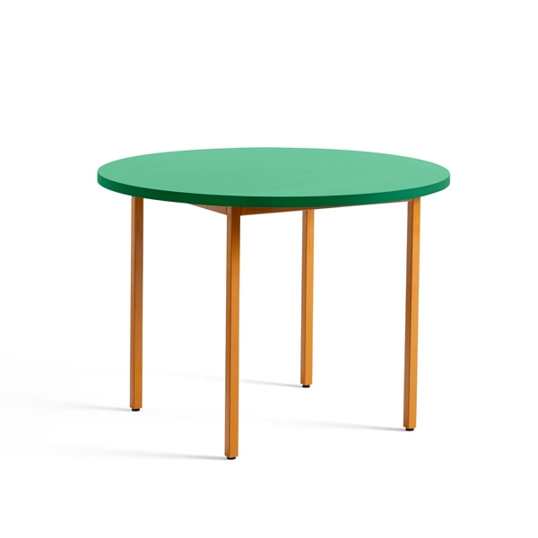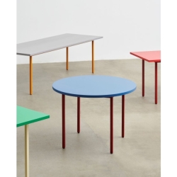 Designer-duo Muller Van Severenin Two-Colour Table -pöydissä leikitellään väreillä, materiaaleilla, kontrasteilla ja yksinkertaisilla muodoilla. Pöydässä robustit teräsputkijalat yhdistyvät Valchomat-komposiittikannen orgaaniseen olemukseen. Yksinkertaiset muodot ja pelkistetyt värit jättävät materiaaleille ja niiden kontrastille tilaa puhutella.