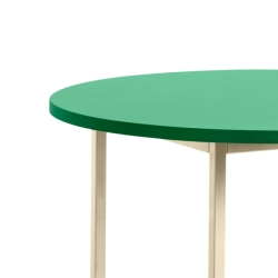 Two-Colour -pöydissä näkyy Muller Van Severenin töille tyypillinen geometrinen, värikäs ja elegantti minimalismi, joka onnistuu olemaan yhtä aikaa tuoretta, yllättävää ja yksinkertaista.