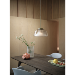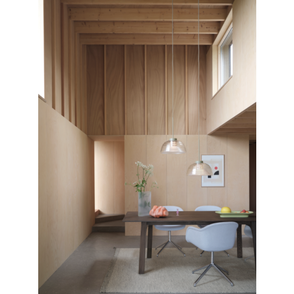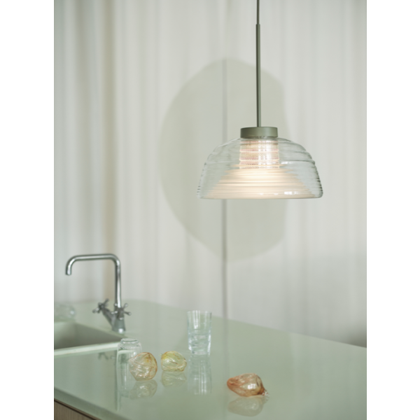 Muuton kaksikerroksinen riippuvalaisin Two-Laayer tuo uusia näkökulmia klassiseen lasiriippuvalaisimeen ryppyisellä, suupuhallettulla lasillaan, luoden ainutlaatuisia optisia tehosteita eri kulmista.