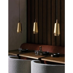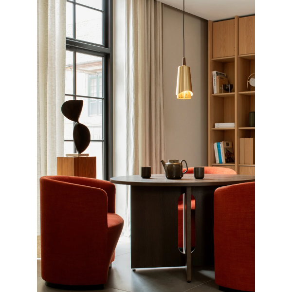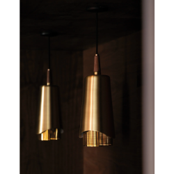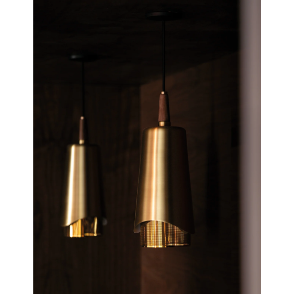 Arthur Umanoffin 1950-luvun lopulla suunnittelema samanniminen riippuvalaisin tuo esiin täydellisen symmetristen, geometristen messinki- ja pähkinäpuukomponenttien kohtaamisen luomat kontrastit.