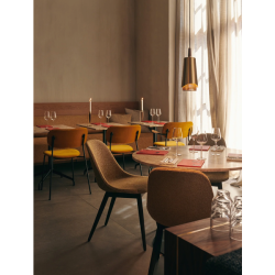 Riippuva valaisin säteilee alaspäin suuntautuvaa valoa, joka valaisee pintoja pehmeällä ja kodikkaalla hehkullaan.