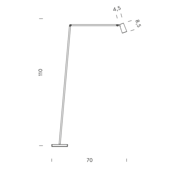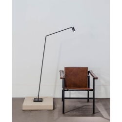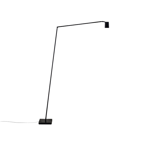 Untitled Reading on upean minimalistinen lattiavalaisin, jonka ilmettä määrittävät sirot, puhtaat linjat. Valaisimen kaksinivelinen ja kapea varsi tarjoaa säädettävää kohdevaloa haluttuun suuntaan.
