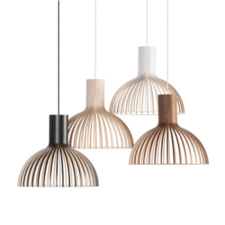 Secto Designin valaisimet tehdään käsin, ne saavat alkunsa suomalaisten, taitavien puuseppien verstaasta, korkealaatuisesta koivusta valmistettuna. Valaisimet saavat kauniin skandinaavisen ulkomuodon, joka taittaa kauniisti valon ja antaa huoneelle elegantin ja tunnelmallisen lisän.