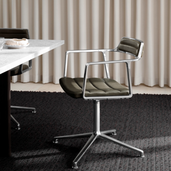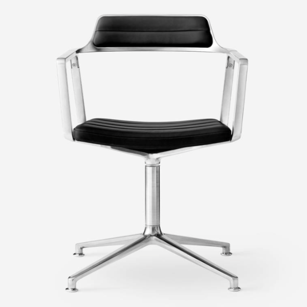Vipp 452 Swivel chair, kiiltävä alumiini, musta nahka