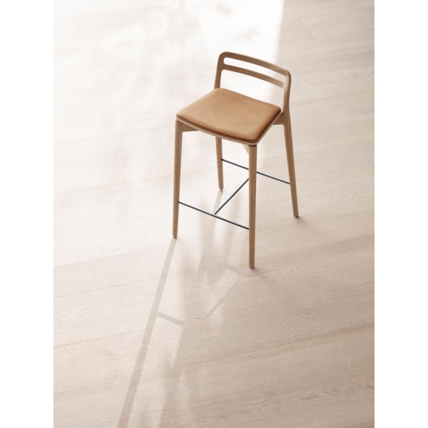 Cabin Counter Stoolin pyöristetyt komponentit yhdistyvät toisiinsa saumattomasti, orgaanisen pehmeästi kaartuen. Liitoskohdat on piilotettu niin, että näyttää kuin tuolin runko olisi yhtenäistä kappaletta. Istuin taas ikään kuin leijuu rungon päällä. Siro jalkatuki on ruostumatonta terästä.
