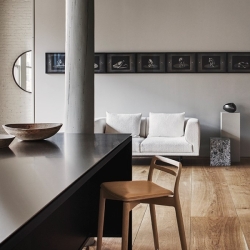 Vipp 484 Cabin Counter Stool on osa Vipp:n Cabin -huonekalusarjaa, jossa luonnon materiaalit ja taidokas käsityö saavat loistaa. Vipp:n 80-vuotinen historia terästuotteiden valmistuksessa, omaleimainen pelkistetty muotokieli, sekä äärimmäisen huolitellut yksityiskohdat näkyvät tyylillisenä varmuuteena myös uuden, lämpimämmän materiaalin valtauksessa.