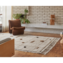 Ilmeen luonnonläheisyys, elävä ja samalla vahvan luonnollinen värimaailma tekevät matosta sopivan monenlaisiin sisustuksiin ja tiloihin - esim. makuutiloihin ja olohuoneisiin. Hapsusaarekkeiden korkeus on n. 2,5 cm- itse solmittu matto on korkeudeltaan n 1 cm.