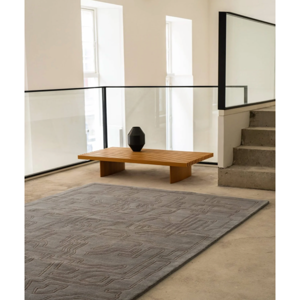 Kaunis ja graafisen kuviollinen Volcano Dust-Structures 2.0 matto on sekä puhutteleva että kestävä vaihtoehto niin kodin kuin julkisiinkin tiloihin. Täyttä villaa oleva matto on myös helppo pitää puhtaana ja se on pitkäikäinen. Ilmeensä matto on saanut menneestä "traces of man"ideasta - siinä on muistumia kiinalaisista leimoista sekä kansantaiteen kuvioinneista ja myös värimaailma on maaperään viittaava.