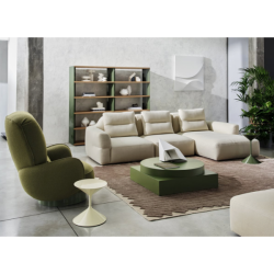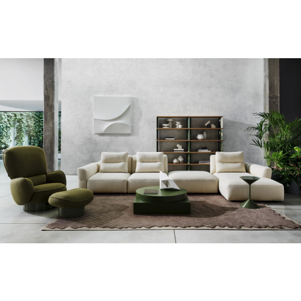 MATERIAALIT: teräsrunko joka on verhoiltu itsestään sammuvalla polyuretaanivaahdolla, jossa on kasvipohjaisia polyoleja. Selkätyyny kierrätetyllä PET-kuidulla. Liimaton rakenne. Irrotettava kangaspäällinen Terso