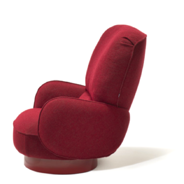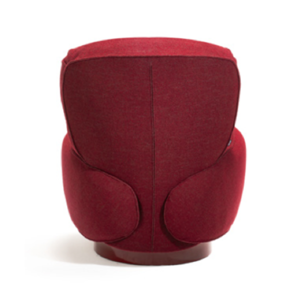 Myös kookas rahi noudattaa tuolin visuaalista ja rakenteellista olemusta - maalattua jalustaa saa väreissä talkki, hamppu, oranssi, levänvihreä, amarantti-punainen ja musta. Itsestään sammuvassa polyuretaanivaahtoverhoilussa on kasvipohjaisia polyoleja.