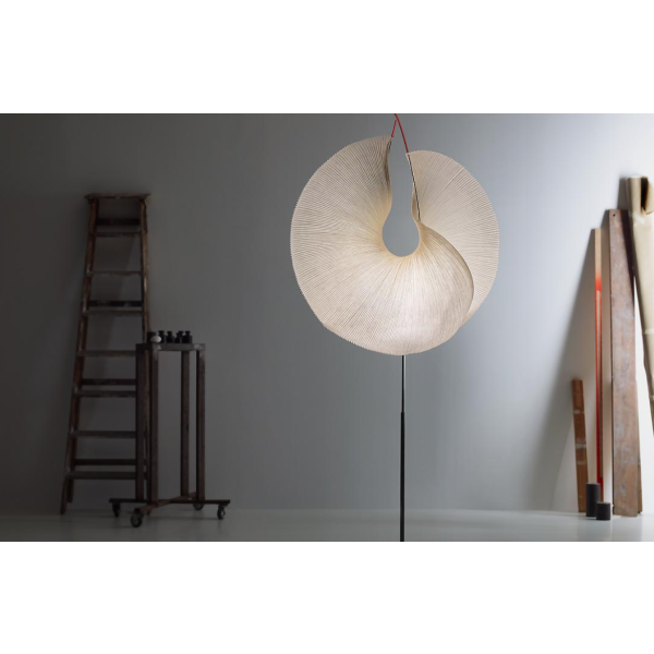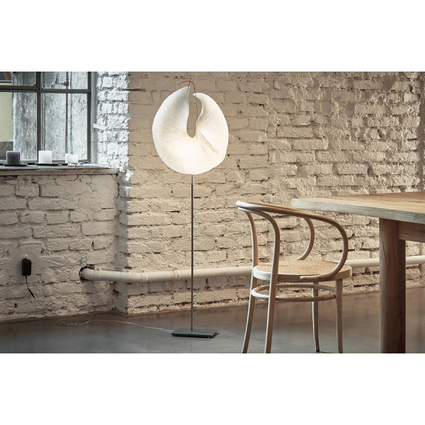 Kaunis ja runollinen Yoruba Rose lattiavalaisin lumoaa tyylikkyydellään ja muotojensa täydellisyydellä. Paperiarkki on lähes pyöreä ja ripustettu ohuiden metallitankojen varaan. Sen ylöspäin suuntautuva harmoninen ilme ja erittäin miellyttävä valo tekevät siitä ihanteellisen valonlähteen tiloihin, joissa halutaan rentoutua.