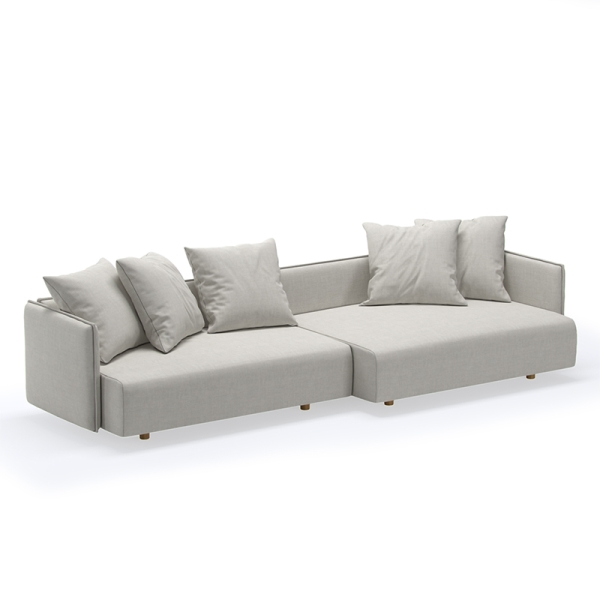 Modo-sohvan verhoilu on käytännöllinen ja tyylikäs. Irrotettava kangas helpottaa puhtaanapitoa, ja verkkokaupassamme sohvat on verhoiltu kestävällä ja vesipestävällä tekokuitupohjaisella kankaalla. Mikäli kaipaat yksilöllisempää ilmettä, saatavilla on laaja valikoima verhoilumateriaaleja – villasta ja pellavasta puuvillaan, sekä ylelliseen pehmeään nahkaan.